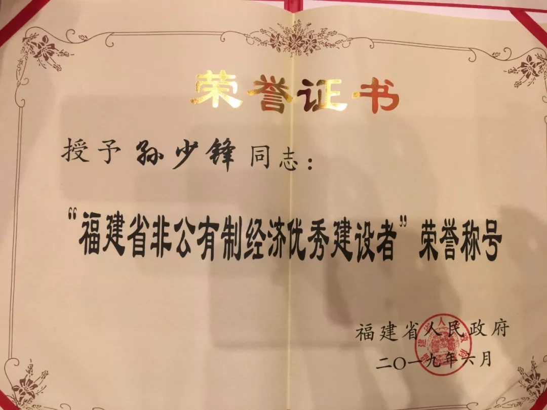 福建省非公有制經(jīng)濟(jì)優(yōu)秀建設(shè)者證書